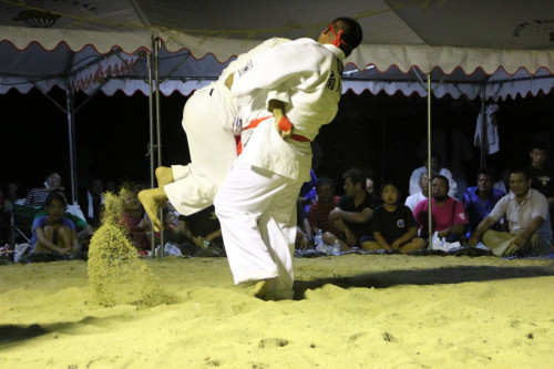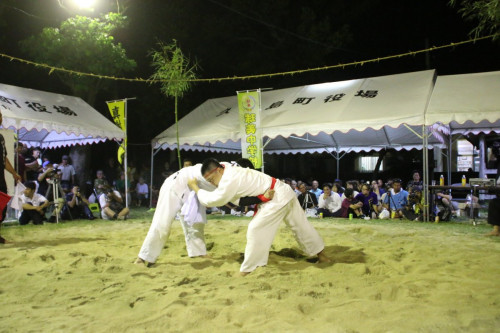 沖縄角力は、普通の日本相撲と違って柔道着で、帯を締めて行われます。背中が地面に着くことで勝敗が決まる独特なルールです。儀間志良堂蔵角力大会は、儀間志良堂蔵で2022年7月23日(土)に開催されます。