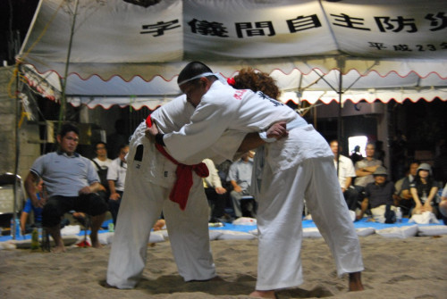 一般的な相撲のスタイルのような裸に廻し姿ではなく、柔道着(角力着)を着て戦うことが特徴です。