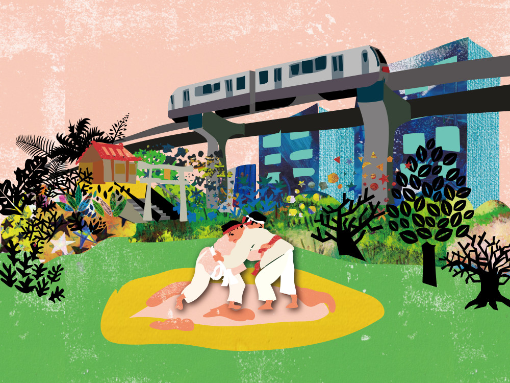 NHK朝の連続テレビ小説「ちむどんどん」で登場した「沖縄角力(おきなわすもう)」。