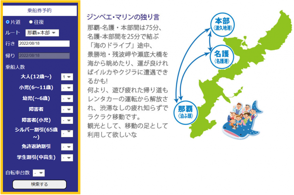 | 那覇〜本部 | 大人1,000円 | 小児500円 |
