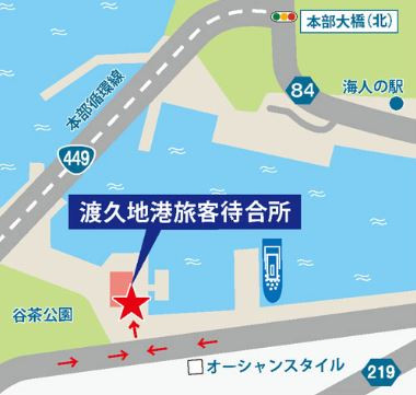 | 本部 | 渡久地港旅客待合所 | 渡久地港:本部町谷茶29 |