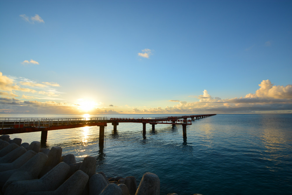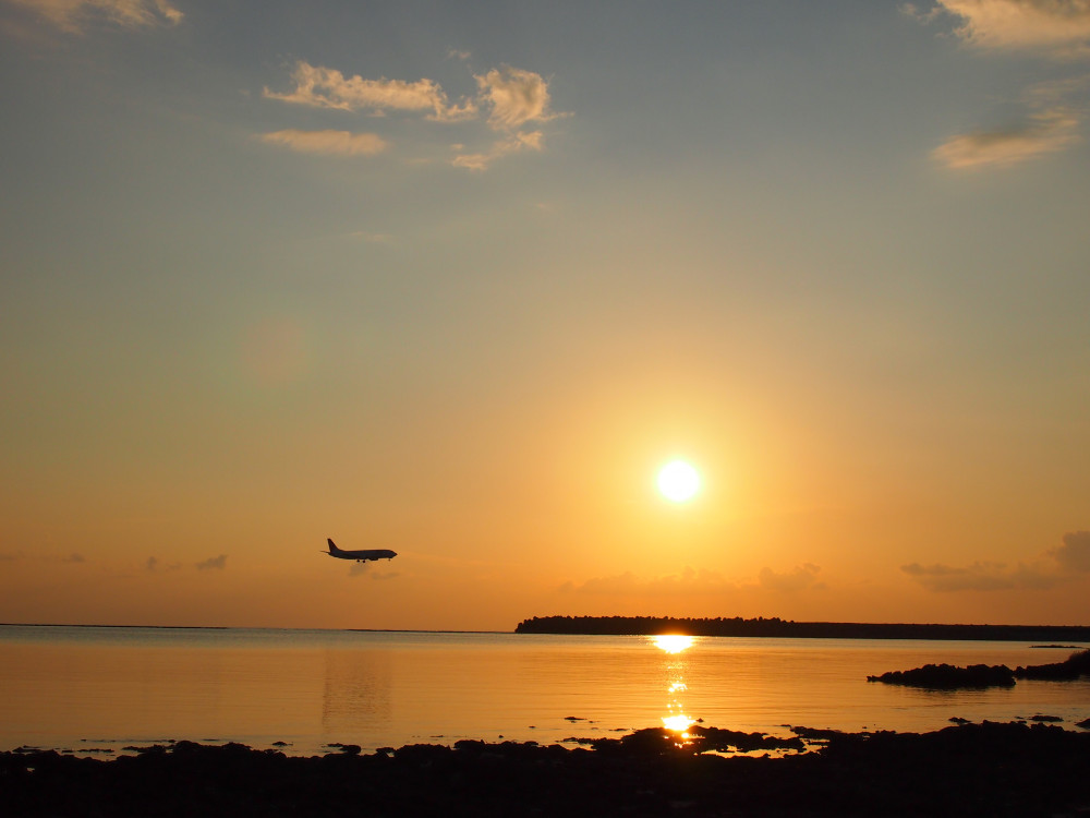 下地島空港の滑走路と、海上に伸びる誘導灯桟橋が有名な17エンドからはタイミングが良ければ飛行機と夕日の美しい光景が望めます。