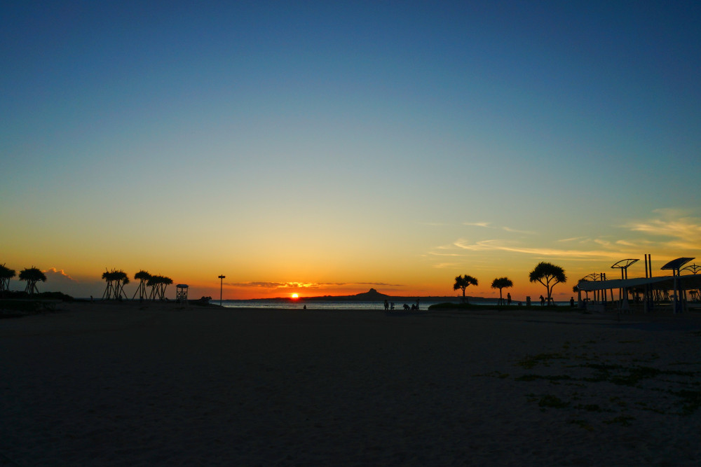 サンセットが楽しめる時間帯は時期によって異なりますが、4月から9月は19時~19時半頃、10月から3月は17時半~18時半頃が日の入り時間となっています。当日の日の入り時刻を調べたい場合は、「沖縄 日の入り時刻」と調べれば目安の時刻が検索できますので、参考にしてみてくださいね。