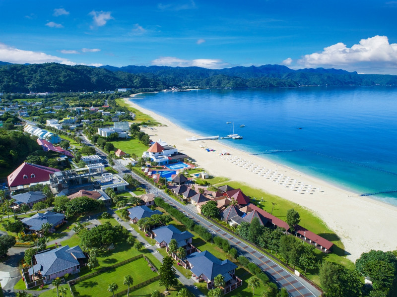 キメ細やかな天然白砂のビーチが約1kmに渡って続くプライベートビーチ。見渡す限りにエメラルドグリーンの東シナ海が広がり、その水質は環境省による水質調査で、毎年最高レベルの評価がされるほどの透明度を誇ります。