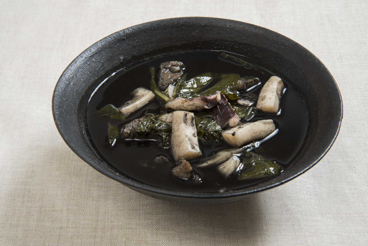 真っ黒な一杯にコクと旨みが凝縮され、見た目以上の驚きがある「イカスミ汁」など