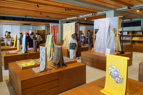 施設の1階は展示ギャラリー・ショップコーナー・情報コーナー、2階には琉球びんがた事業協同組合、3階には那覇伝統織物事業協同組合が入居していて、お気に入りのびんがた商品を購入することもでき、実際に染め物を体験することもできます。