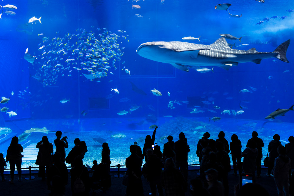 「沖縄の海との出会い」をテーマに、サンゴ礁の浅瀬から深海まで沖縄の海を体感できる世界最大級の水族館「沖縄美ら海水族館」。自然光のさしこむサンゴや熱帯魚の水槽、ジンベエザメやマンタなどが群れ泳ぐ「黒潮の海」、神秘的な深層の海まで、沖縄の海にダイビングする感覚で見学を楽しめます。
