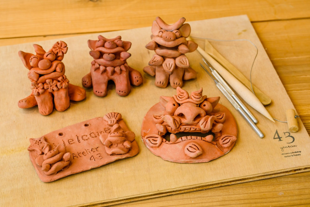 手作り体験は3種類あり、素焼きのカップや器を彩る「やちむん絵付け」や、スタッフのレクチャーを受けながら製作する「陶器シーサー作り」、当日持ち帰りが可能な「シーサー絵付け」などを気軽に楽しむことができます。店内には陶器を焼成する大窯が設置されていて、器の出し入れなどを間近に体験するのも楽しいひととき。またオリジナルのやちむんやシーサー、アクセサリーなどを取り揃えたショップも併設しているため、体験の後にお土産を購入することもできます。沖縄の海やサンゴ、風などの素朴な自然をモチーフに生み出されたスタイリッシュなやちむんは、自分へのお土産としてもおすすめです。「地域クーポン」は、体験はもちろん、商品購入の際にも利用することができます。