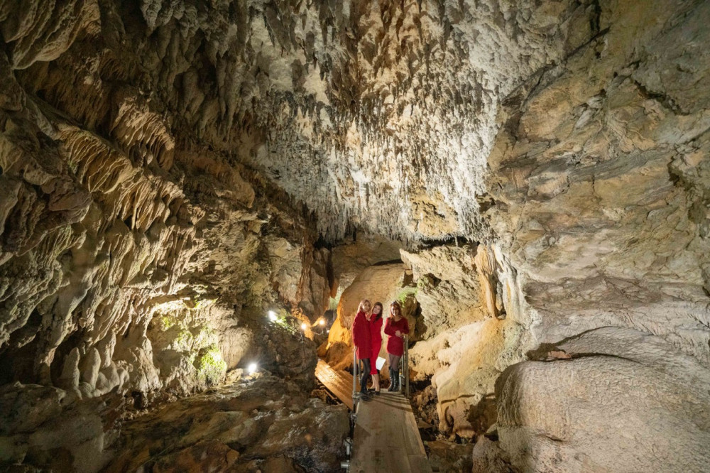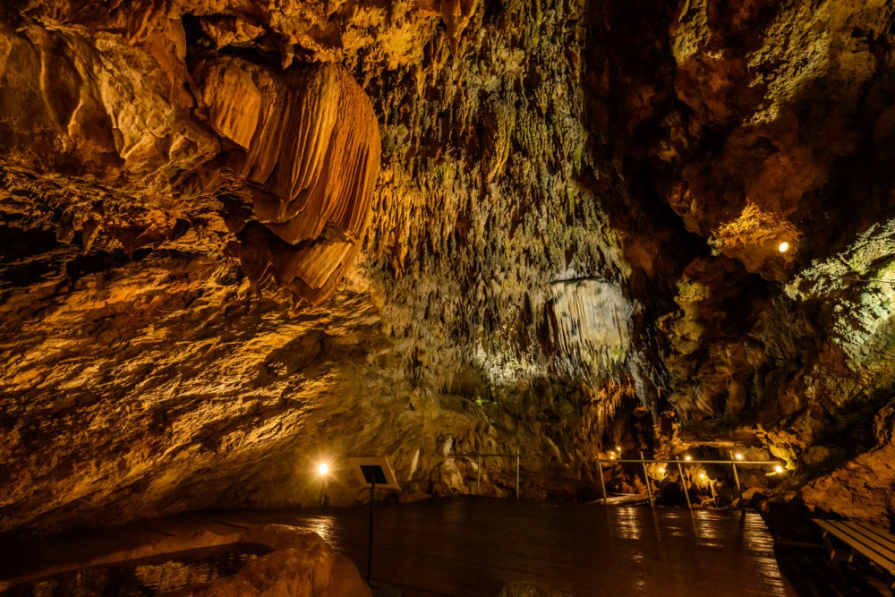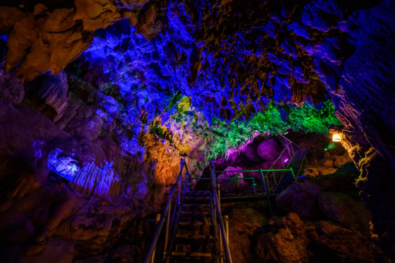 洞内の経路は歩きやすいように整備されているため、家族連れでも気軽に楽しめるのが魅力です。また、全長200mの洞内には、紅白の鍾乳石が向かい合っている縁起の良い「紅白岩」をはじめ、きらめく「キラキラ岩」や「黄金岩」、フォトジェニックな「ハートロック」など、多彩な見所があります。出口付近ではライトアップされた幻想的な空間が広がります。太古のロマンに触れる鍾乳洞探検で、新しい沖縄の魅力を感じてみてください。「地域クーポン」は入場料のほか、パーラーでもご利用可能です。