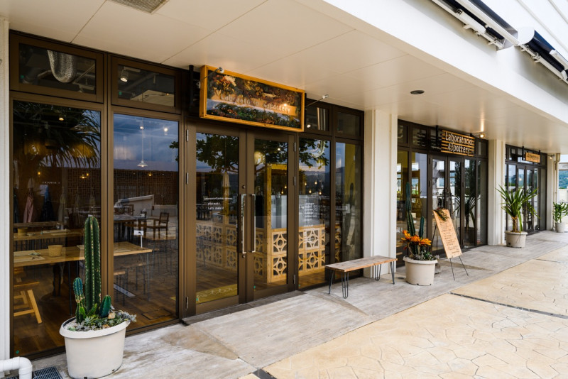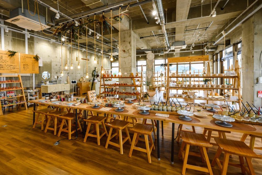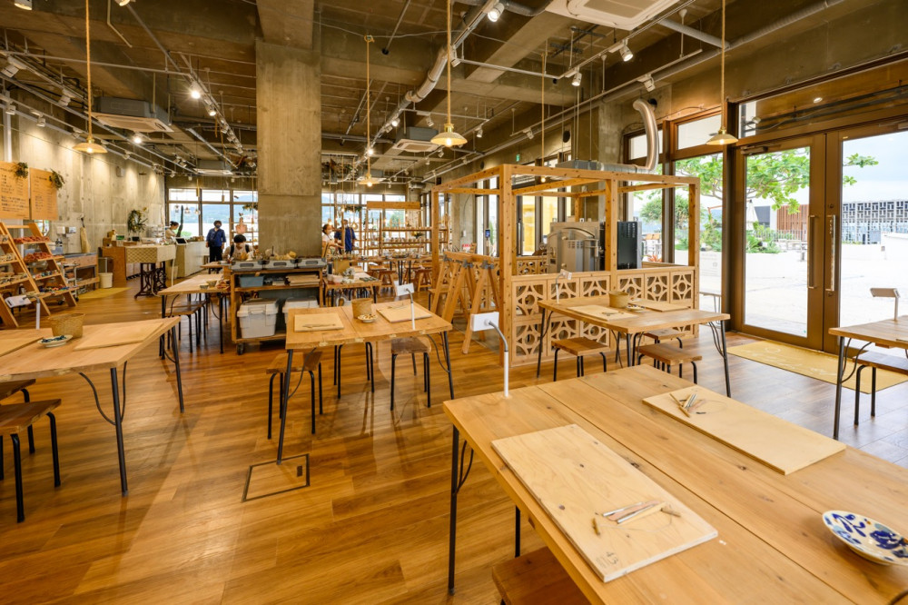 美しい海を望む本部町。オキナワ ハナサキマルシェ内にある「Laboratorio43pottery(ラボラトーリオヨンサンポッテリー)」は、沖縄の伝統工芸「やちむん」の手作り体験やお買い物ができる複合型ショップです。「彩る+make」をテーマに、まるでカフェのような空間で、ゆったりくつろぎながら沖縄の文化に親しめます。