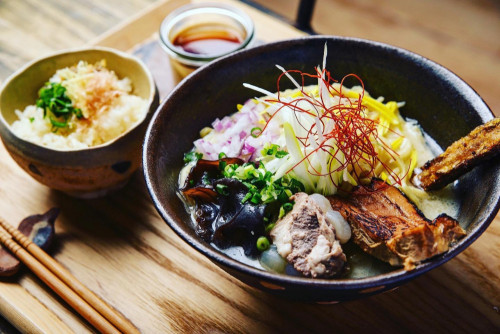 豚骨白湯と貝出汁のスープが特徴の新感覚沖縄そば「貝出汁沖縄そば」や100%沖縄県産の黒糖を使用した「黒糖プリン」、シジミベースの出汁で炊き上げた「あさりご飯」が味わえる一軒です。