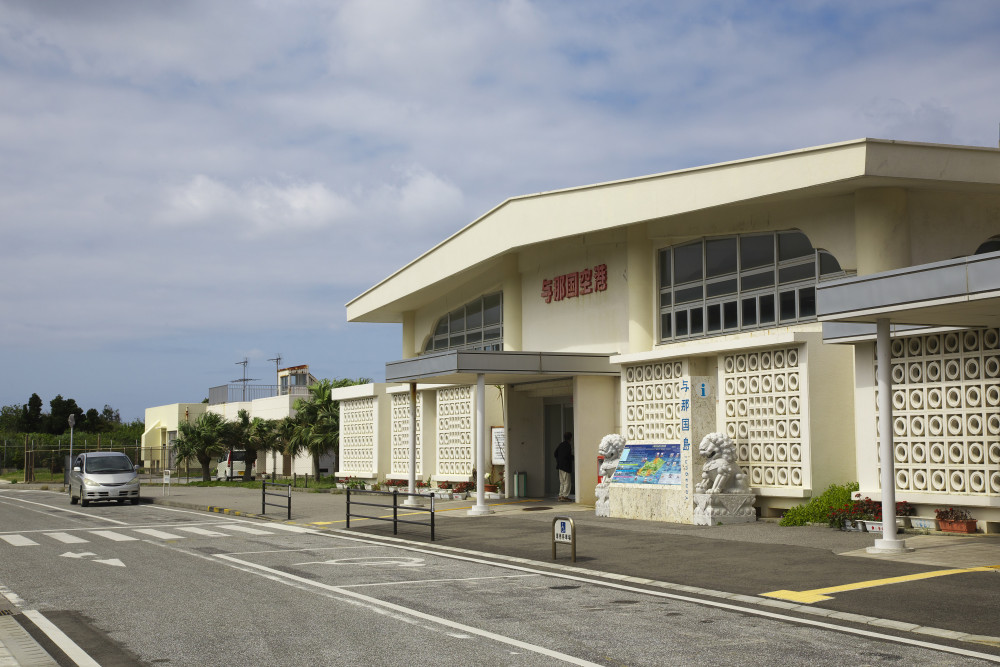 与那国空港は久部良(くぶら)岳と東シナ海を望む島の中央部北岸に位置し、東西に伸びる1500mの滑走路の西側には与那国馬や牛などが草を食む北牧場が広がります。那覇空港と石垣空港より、日本トランスオーシャン航空(JTA)と琉球エアコミューター(RAC)が運航しています。