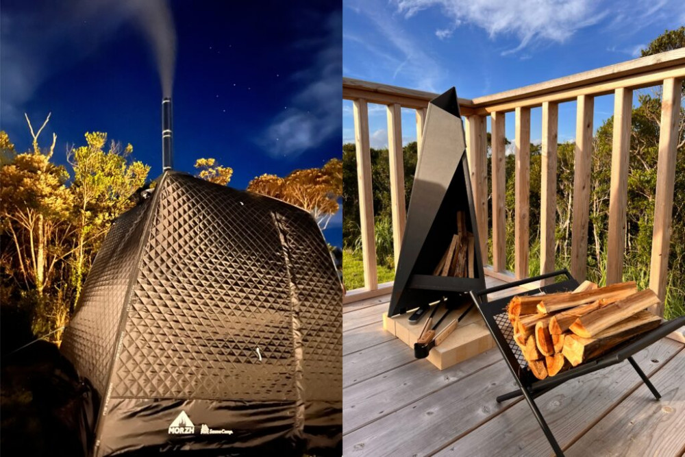 12月23日(金)、道の駅やんばるパイナップルの丘安波の敷地内に体験型宿泊施設(グランピング)CAMP VILLAGE やんばるの音(ね)がオープンしました。家具付きベルテントでの宿泊と夕朝食がセットになった“やんばるの音”を体験できちゃいます。世界自然遺産の森に住む小動物や鳥たちの鳴き声と、満天の夜空を見ながらBBQやテントサウナ、焚き火を楽しみませんか?(気象状況によっては体験できない事があります)