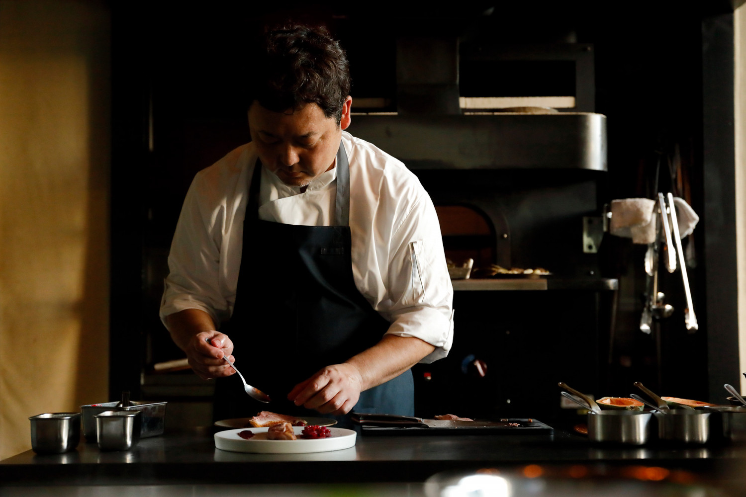 12月23日(金)に「ホテル ストレータ 那覇」の敷地内にある別棟に、カウンター14席のカウンターダイニングMOSS okinawaがオープンしました。店内には琉球ガラスの照明が灯り、壁の琉球石灰岩をはじめ木や石などの自然素材が用いられ、沖縄の懐かしい風景を想起させます。オープンキッチンをぐるりと囲むように配された14のプライベート感あふれる客席からは、料理ができあがる様子を臨場感たっぷりに楽しめます。その真ん中には大きな窯が設えられ、まるで現代の囲炉裏のように温かく迎えられます。