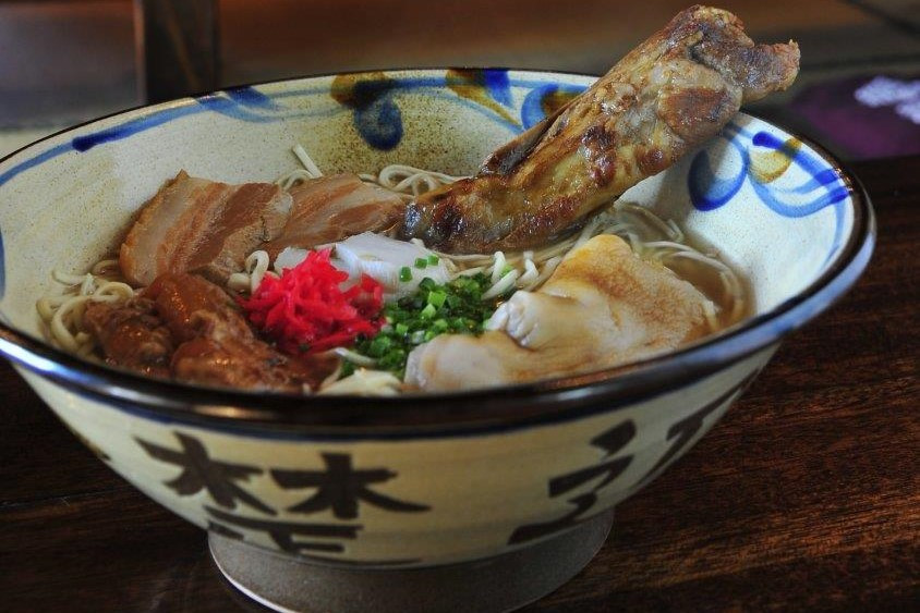 楚辺そばの「超大盛り楚辺そば」に使われる器の直径はなんと35cm!この器にたっぷりの沖縄そばと、本ソーキ・三枚肉・軟骨ソーキ・てびちがドーンと乗っているのが、「超大盛り楚辺そば」です!大食い自慢の方は是非挑戦してみてください!