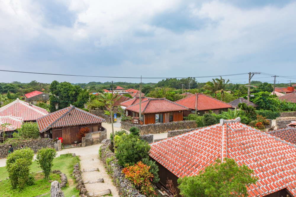 白い砂の道と花々、赤瓦の民家や屋根の上のシーサーなど沖縄の古い町並みが残されており、国の「重要伝統的建造物郡保存地区」にも選定されています。