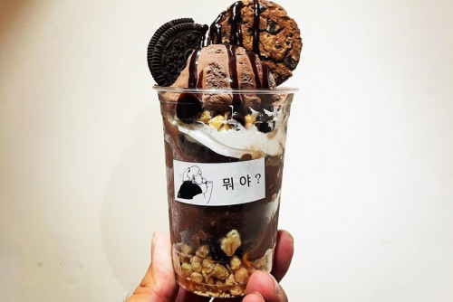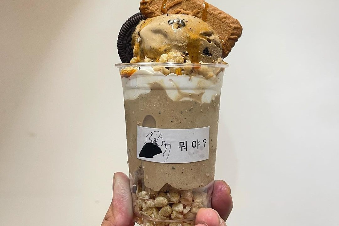 こちらハイブリッド店舗で、昼間はMinsa cafeというカフェが営業している店舗になります。19:00から뭐야?(ボヤ?)の営業時間となり夜パフェを食べることができます!色々な種類のパフェがあるので、カップルやグループで食べ比べしててみてはいかがでしょうか。