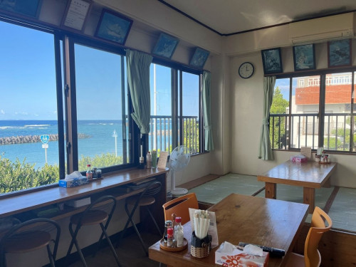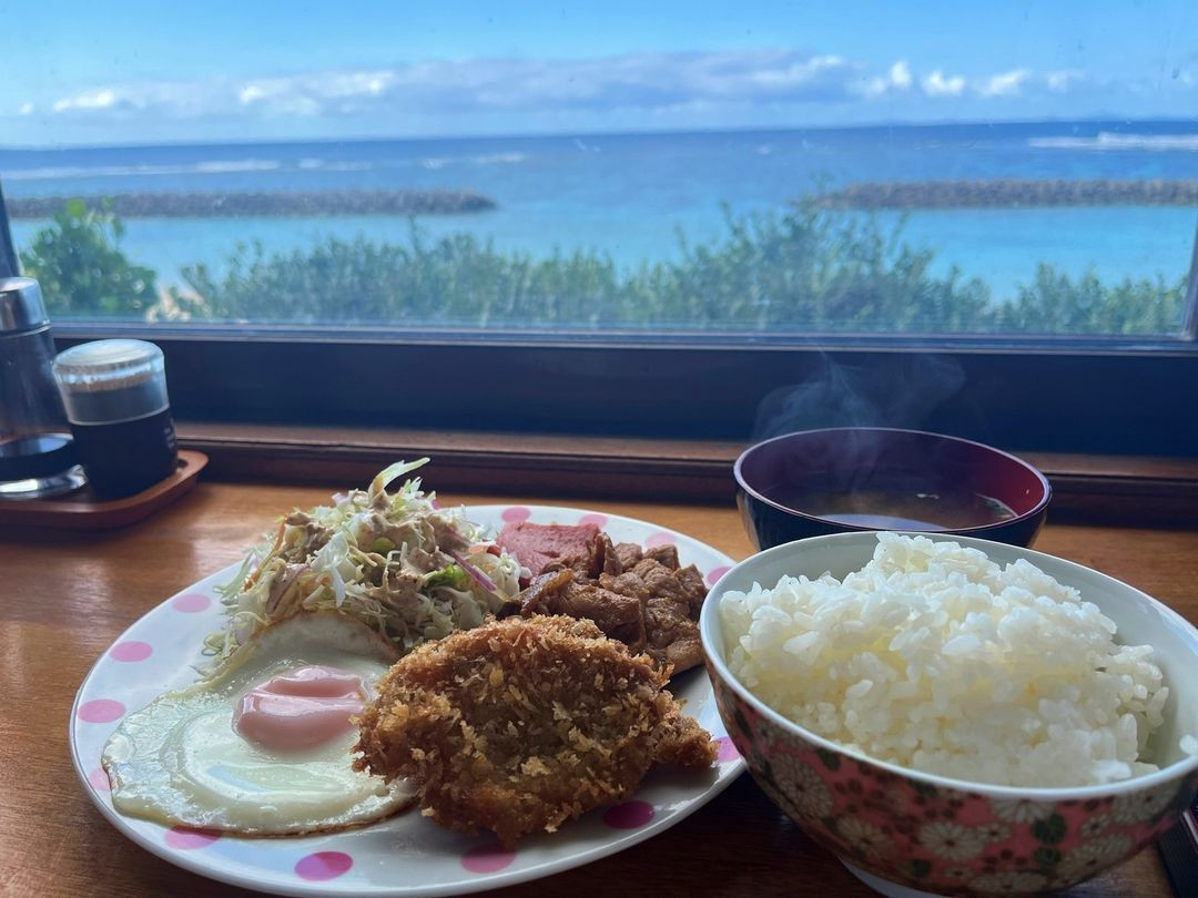 第3位には、どこか懐かしい沖縄の定食屋「おおぎみ食堂」がクランクイン!こちらの食堂は、なんと言ってもロケーションが最高なんです!お店は、一見民家っぽい外観ですが、実は海の絶景を見ながら沖縄の定食を楽しめる隠れグルメスポットとなっています。