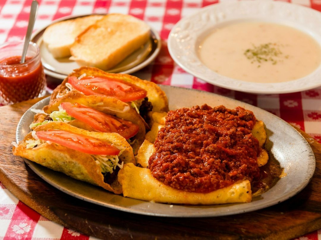 自家製の生地を使用したタコスは、皮の外側はパリっと、内側はもっちりしていて、中の具材と相性抜群!他にもステーキやオムライス、アップルパイなど豊富なメニューが提供されているんです。
