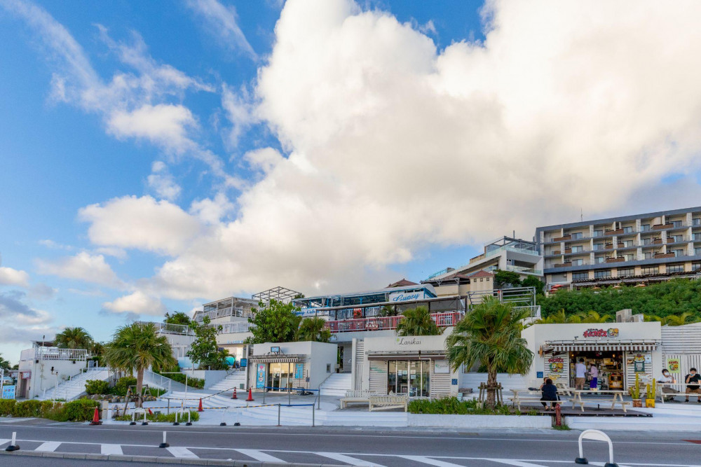 那覇空港、もしくはゆいレール「赤嶺駅」から東京バス「ウミカジライナー」で約10〜15分、「瀬長島ホテル前」下車すぐ