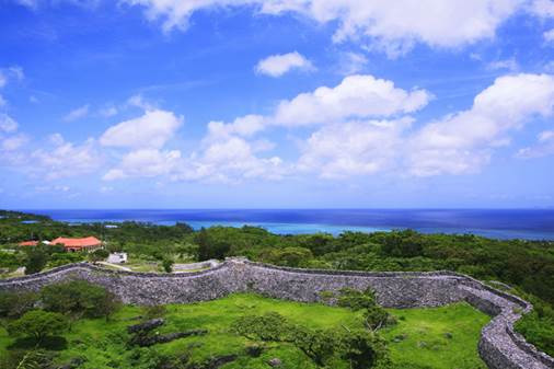 今帰仁村にある世界遺産の城跡。琉球が3つの地域に分かれて勢力争いをしていた三山時代(さんざんじだい)の北山王の主城で、北山城とも呼ばれています。標高90~100mの丘上に築かれた1.5kmに渡る美しい城壁と、そこからの壮大な海の眺めはまさに絶景です。