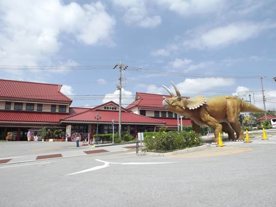 広い店内には元祖「紅いもタルト」をはじめとする自社工場で作られたお菓子が豊富に揃っています。また、「DINO恐竜PARK やんばる亜熱帯の森」が併設されていて、子どもが乗って遊べる遊具タイプから、実物大で本格的に動くものまであり、大人も子どもも大興奮。
