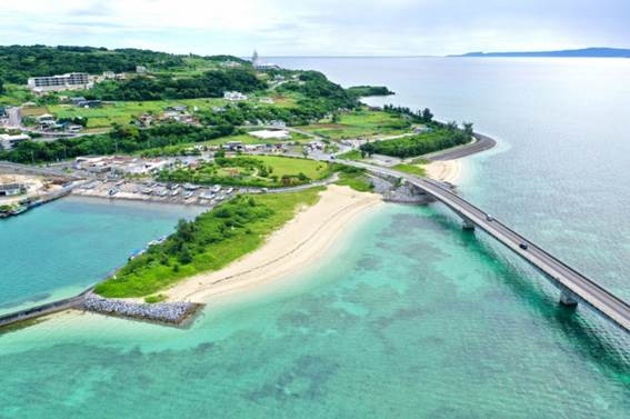 まずは、青い海と真っ白な砂浜、そして古宇利大橋が望める沖縄本島北部の人気ビュースポットへ。橋のたもとにある古宇利ビーチで遊んだり、隣接する「古宇利物産センター」では島の特産品を取り揃えていて、お土産を購入することもできます。