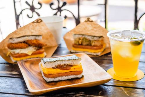 赤瓦と白いのれんが目を引く、沖縄のソウルフード・ポークたまごおにぎりを出来立てで提供する人気店。具材は定番のポークたまごや油みそ、高菜など豊富。北谷店限定のエビマヨやとんかつも人気で、ごはんと具材の相性が抜群なので大ぶりサイズながらペロッと完食できちゃいます。