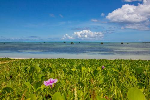 空港滑走路のすぐ近くにある、驚くほど透明度の高いビーチ。17ENDというちょっと変わった名称は、下地島空港のパイロット訓練用滑走路に書かれた航空用語「RW17END」に由来しています。テトラポットの上から眺めるだけでも、その海の青さは息を呑むほど。周辺道路は車の通行はできませんが、自転車ならば通行可能。吸い込まれそうな青い海のすぐ横を走ることができます。