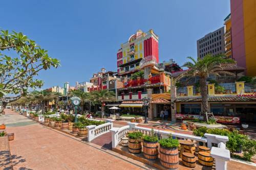 海沿いにある人気のタウンリゾート。カラフルな建物が並び、グルメやスイーツ、雑貨店など約300もの店舗があります。すぐ近くにはサンセットビーチ、アラハビーチなどの遊泳ビーチもあり。また、毎週土曜日の20時から数分間、花火も打ちあがり週末の夜を彩ります。日程があえば子どもたちと花火を見るのもおすすめです。