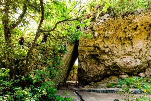 長い年月をかけてできた鍾乳洞が崩壊してできた自然豊かな谷間で、神秘的な景色が広がるパワースポット。サンゴ礁由来の石灰岩地帯に広がる亜熱帯の森や洞窟などを、専門ガイドと一緒に散策します。コース内には命の誕生を祈る洞窟や、崖上から根を伸ばす大木「ウフシュガジュマル」、古代人の居住跡などを巡ります。
