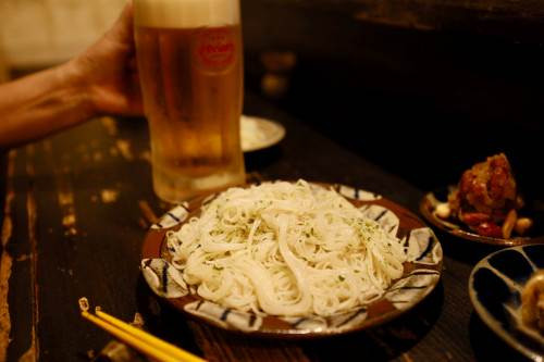 夕食は、国際通り近くの社交街「竜宮通り」にある老舗の居酒屋へ。沖縄県内にある47酒造所の泡盛をすべて取り揃えていて、少しずつ飲み比べることができます。島らっきょう、スクガラス豆腐、ソーメンチャンプルーなど沖縄ならではのおつまみもそろっていて、一人用や女性用のハーフサイズもあり。ついついお酒が進みます。