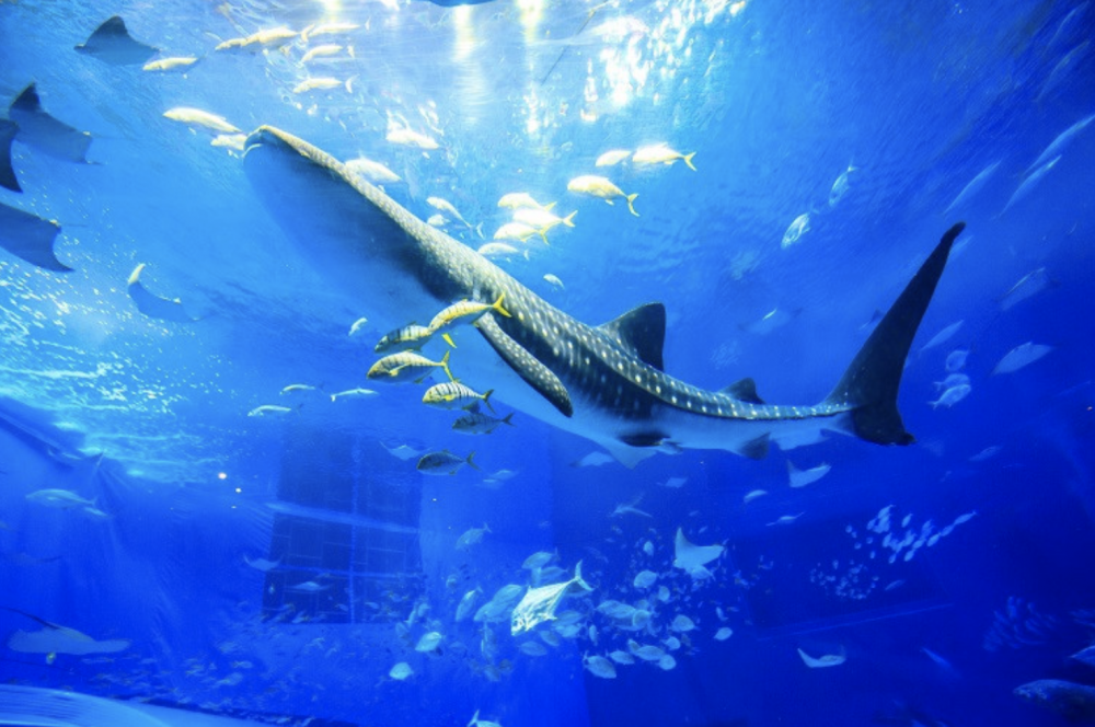 沖縄の人気観光スポットである水族館。那覇から約90km離れた本部半島にあって不便な印象がありますが、実は、高速バスやリムジンバス、定期観光バスなど、いくつものバス路線を利用することができる、車なし観光の最強スポットでもあります。周辺のホテルに1泊して、朝いちばんや夕方以降など、比較的空いた時間に入館するのもおすすめですよ。