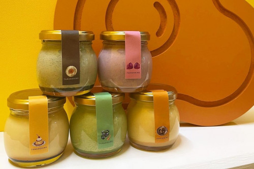 シンプルななめらかぷりんで、紅芋、抹茶、黒ゴマ等いろんな味のプリンが食べられます。チョコレートやいちごのぷりんもこれから続々登場する予定です。