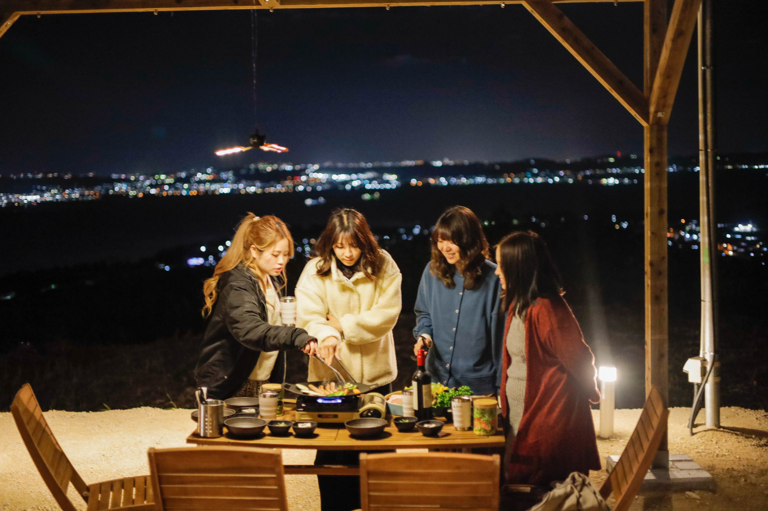 青い海 青い空 夜景も綺麗な絶景グランピング。 パチパチと弾ける 焚き火の音。琉球ハーブティーとパイナップルポーク、石垣牛がオススメのBBQ。沖縄を五感で感じることが出来る最高の空間です。