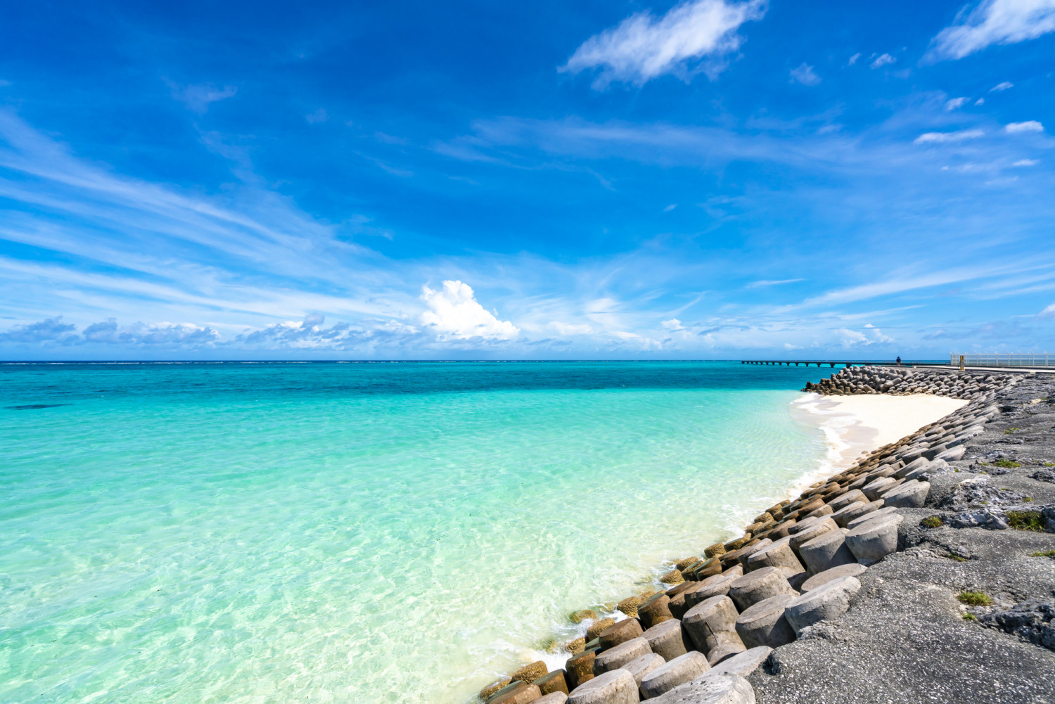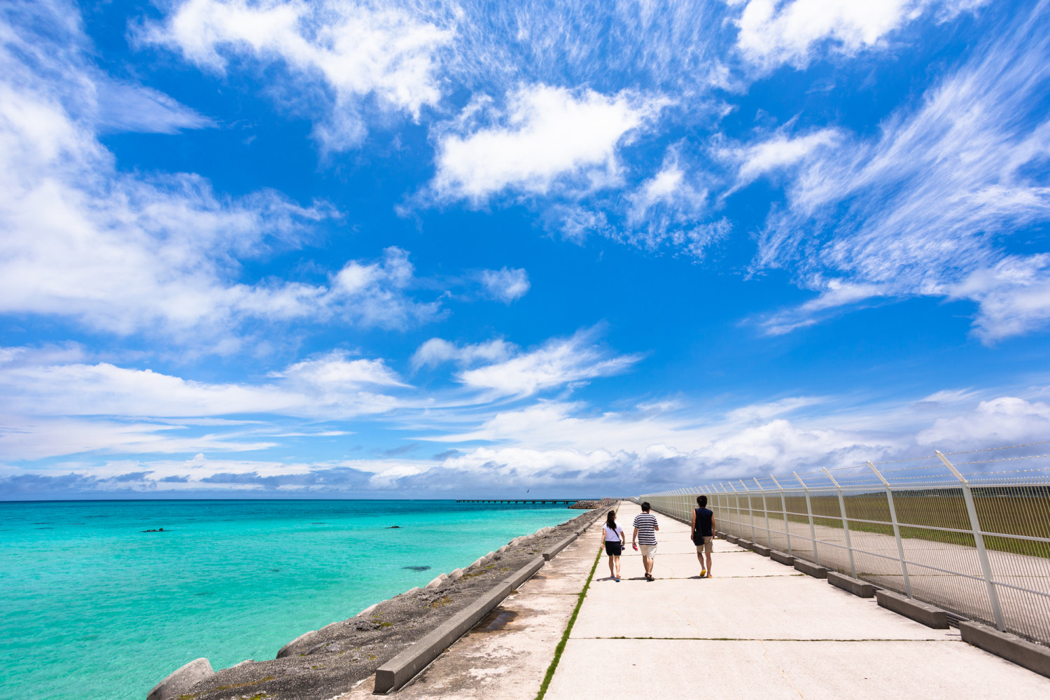 宮古諸島の中でも屈指の海の美しさで人気のビーチ。干潮時間には真っ白な砂浜が現れ、限りなく透明な海が沖まで広がります。不思議な名前は航空用語が由来。飛行機が離発着する瞬間を間近に見ることができます。現在、周辺道路は車両の通行が禁止となっており、夏場や休日には駐車場付近にキッチンカーが出店していますので、ぜひ訪れてみてはいかがでしょうか。