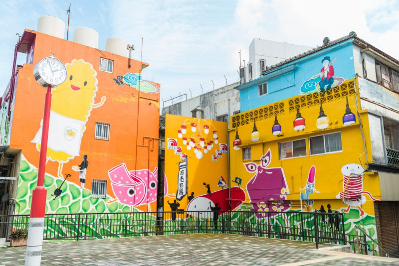 「忘れてはいけない歴史と沖縄市のアイデンティティ」をテーマに、15世紀の越来グスク時代から現代、未来まで、コザの街の歴史を170mにも渡る巨大な壁画で表現したコザ十字路歴史絵巻。何軒もの建物の壁を一枚のキャンバスにみたててペイントした壁画は可愛いものからリアルなものまで様々。お気に入りの壁画の前で写真を撮ってみてくださいね。