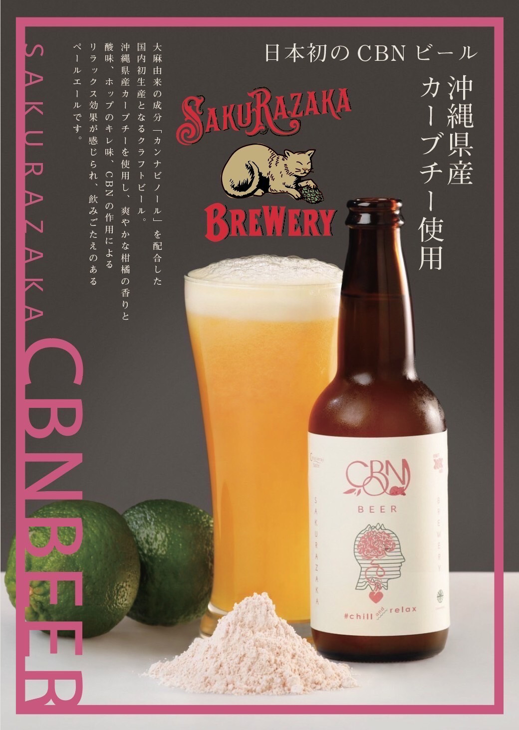 3月19日(日) 那覇市内の国際通りに近い桜坂に「桜坂ブルワリー」がオープンしました!ここでは、希少なカンナビノイド成分である「CBN」を配合した日本初のクラフトビール「CBNビール」を楽しむ事ができます。このビールにはアメリカのラボにて分析通過し高品質に徹底したCBNパウダーと、沖縄の希少なミカン「カーブチー」が配合されています。カーブチーにはリモネンなど多くのテルペン(植物の精油に含まれる成分)が含まれており、豊潤で香り高く、とても飲みやすいビールに仕上がっています。桜坂の新スポットでCBNビールをお楽しみください。