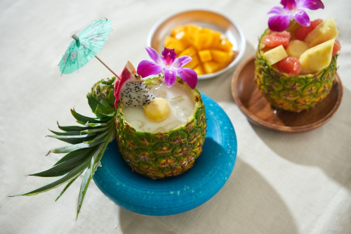 Cafe FIVE FOUR EVERは、約400年前から続く伝統織物「八重山みんさー織」織元のあざみ屋が直営するカフェです。赤瓦で平屋の店内は「伝統・ビンテージ・リゾート」をテーマに、あざみ屋の倉庫からアップサイクルとして再利用した反物や、大正、昭和の職人がこだわり抜いてつくったタイルや、ガラス、金具などの装飾品が散りばめられています。石垣島旅行の良き想い出にいかがでしょうか!