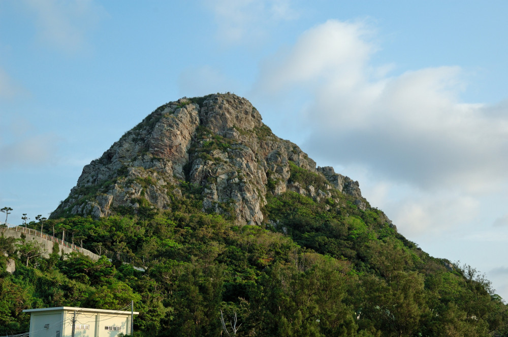 島の中央やや東寄りにある標高172mの岩山。イージマタッチューとも呼ばれ、島民から親しまれている伊江島のシンボル。航海の安全と健康、豊作を祈願する城山御嶽(ウタキ)があり、島の守り神でもあります。