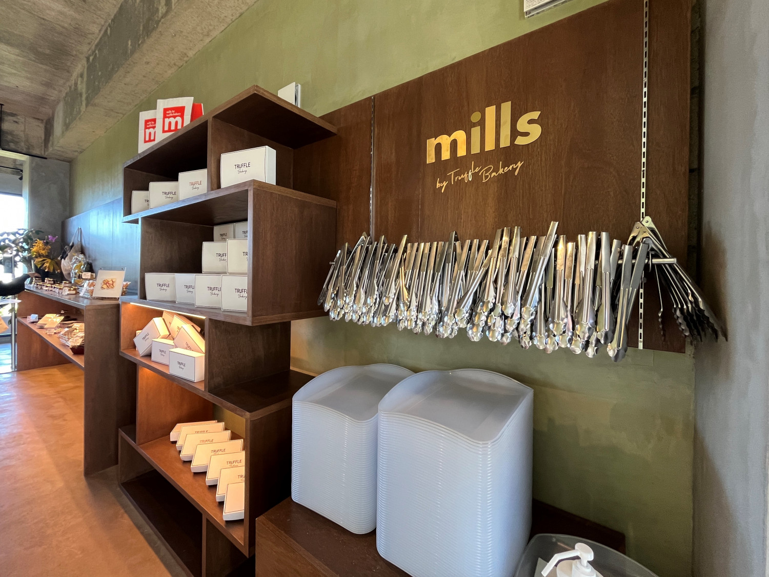 浦添市の道路沿いにある、おしゃれなパン屋さん「mills by TruffleBAKERY 沖縄浦添店」。こちらのお店では「白トリュフの塩パン」が人気です。一歩お店に足を踏み入れると、白トリュフの香りがふわっと広がって幸せな気分になれちゃいますよ。その他にも、黒トリュフのタマゴサンドやレーズンの入ったパンオレザンなど美味しいパンが勢ぞろいしています。