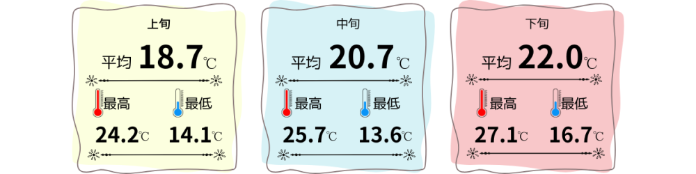 ・25度を超える日も珍しくなく、1年の中でも特に過ごしやすい気候の良い時期とされています。
