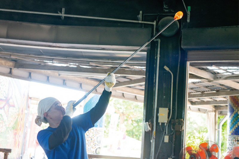 熱気あふれる工房内では、真っ赤に燃え上がるガラスの原料をまるで生きているかのように操り、高い技術で作品に仕上げていきます。工房見学では、間近で迫力ある職人技をご覧ください。また工房内では、グラス「自分らしいオリジナル作品」をつくることができます。