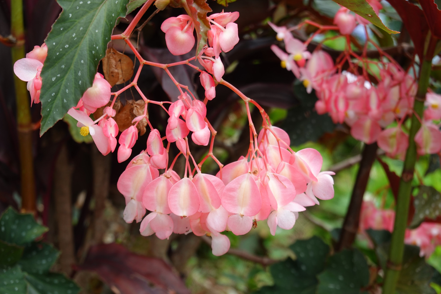 あじさいの他にも、園内にはベゴニアやサクララン、コートダジュール、メディニラ・マグ二フィカ、コンロンカなど、様々な亜熱帯花木も咲き誇っています。
