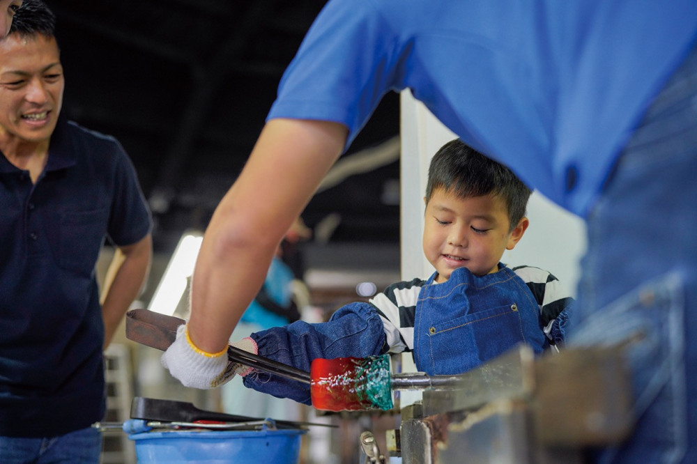 工房内では、グラス「自分らしいオリジナル作品」をつくることができますので家族と一緒に!沖縄の思い出を形に残したいカップルにはぜひ!挑戦してみて欲しい体験です。ほかにも15種類以上の体験をご用意しています。