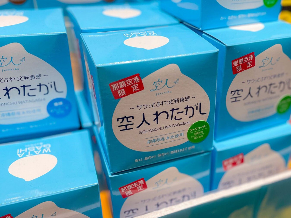やさしい甘さに癒される、口溶けの良いサクフワ食感の焼き菓子「空人わたがし」。卵白と砂糖を泡立て焼き上げたメレンゲ菓子となっており、沖縄の青い空にぴったりなビジュアルとなっています。