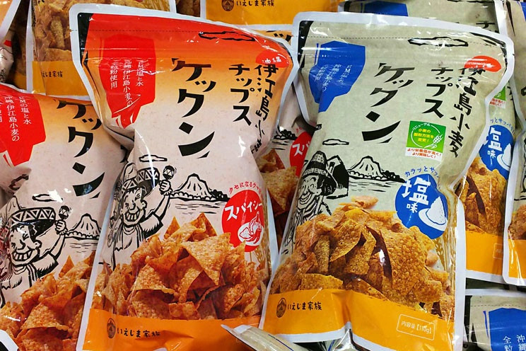伊江島小麦ならではの風味と軽い食感が楽しめるこちらのチップス「ケックン」。