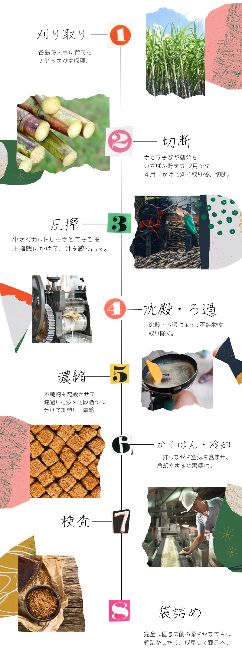 みなさんもよく知っている「黒糖」とは、さとうきびを絞ってでた糖汁を煮詰めて固めたものです。