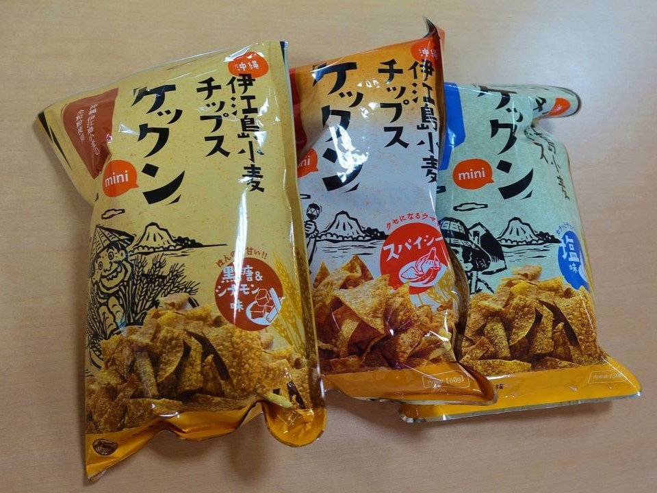 沖縄の伊江島小麦でつくられたお菓子「ケックン」。伊江島小麦ならではの風味と軽い食感が楽しめるこちらのチップスは、一度食べると病みつきになる美味しさなんですよ。特に「黒糖&シナモン味」は、ふわっと香る黒糖の香ばしさがパリパリのチップスによく合うんです!