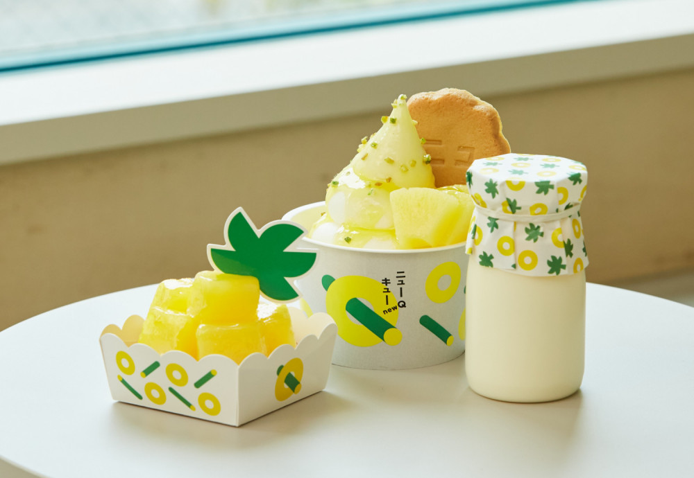 那覇市国際通りの中心にあるパインスイーツ専門店「newQ(ニューキュー)」。キュートなシーサーのイラストが描かれたフォトスポットのある店内では、農林水産大臣賞を受賞した石垣島産の「ティダパイン」を使ったソフトクリームやプリン、タルトなどのスイーツを堪能できます。